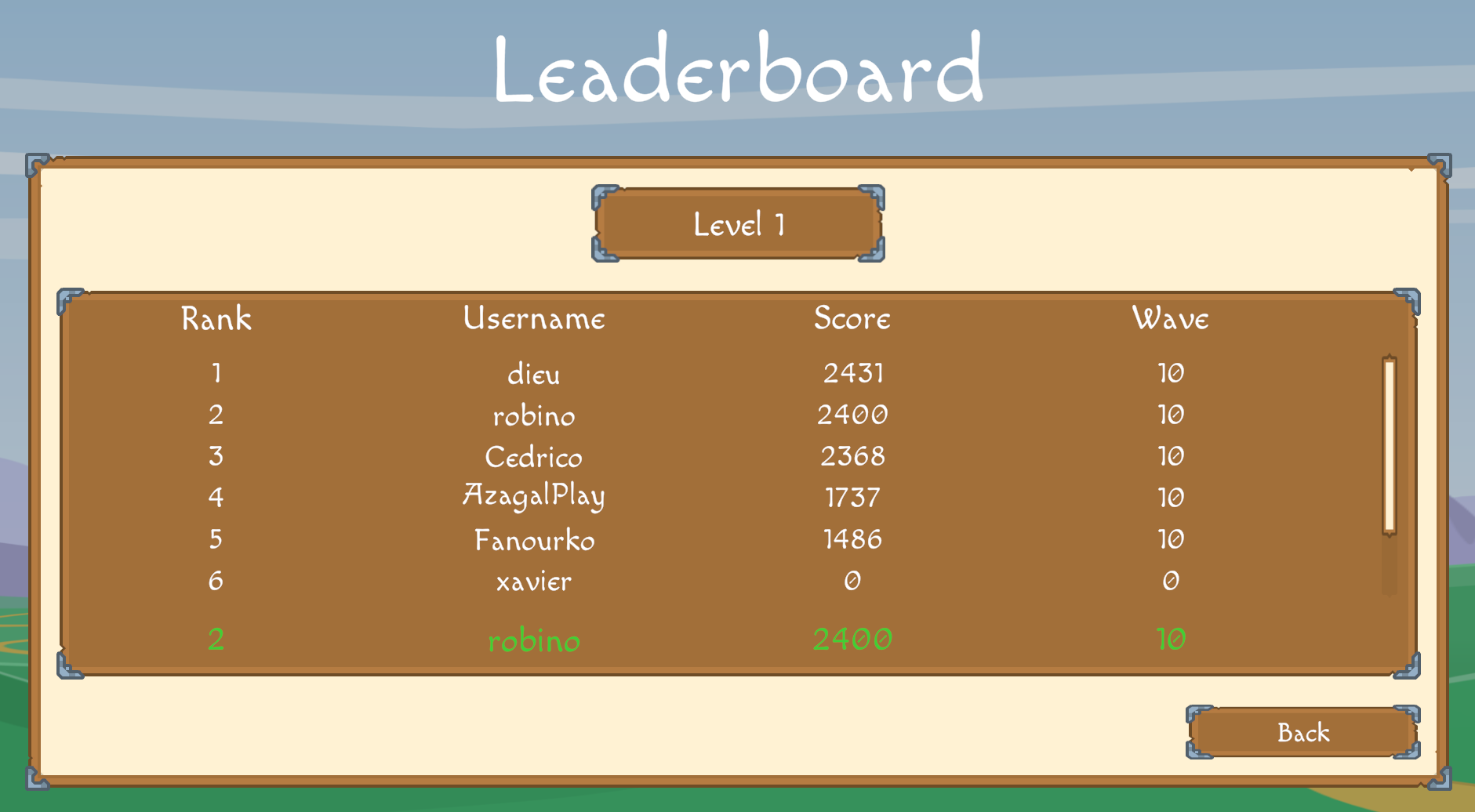 The in game leaderboard let you compete for the best score with your friends, the dev team, and basically any other player on our server.